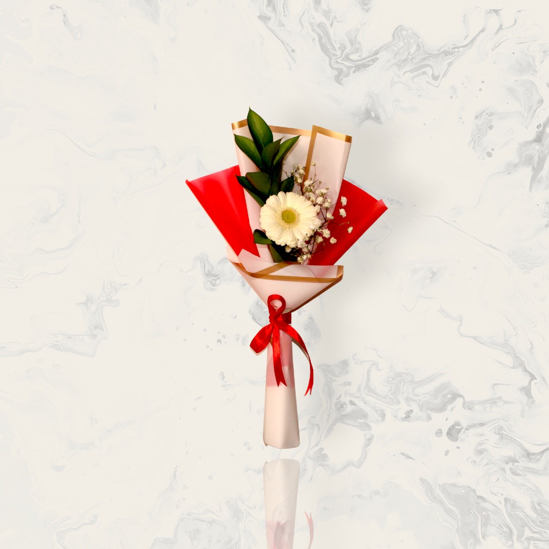 Colorful boquet with gerbera flower, ruscus and gypso.
